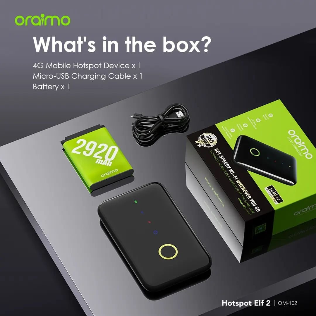 Take your internet with you wherever you go with the Oraimo Mobile Hotspot, a compact and reliable device designed to provide fast 4G LTE connectivity for multiple devices. Whether you’re working remotely, streaming, or traveling, this portable hotspot keeps you connected without hassle.